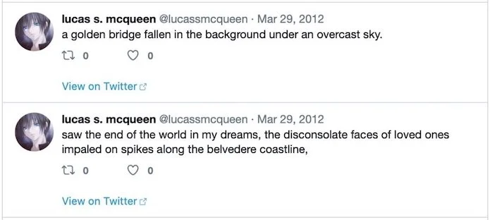 fourteen years ago, somewhere in the early spring of twenty twelve, i had the exact same recurring dream four, maybe five times in the same month..
